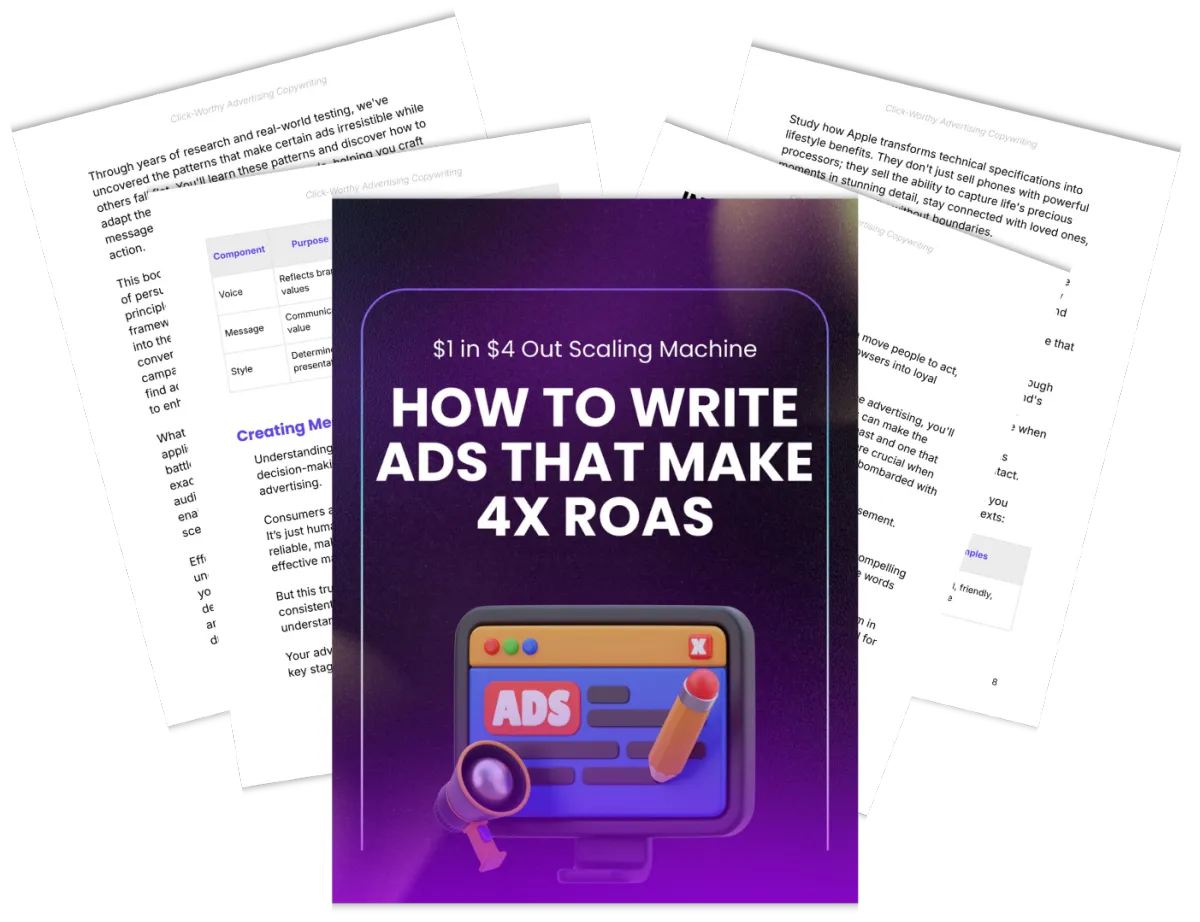 Instead, you need a new systematic approach to writing high-converting ad copy, so that you can finally transform every $1 spent into $4 earned while building a reliable, scalable advertising system.